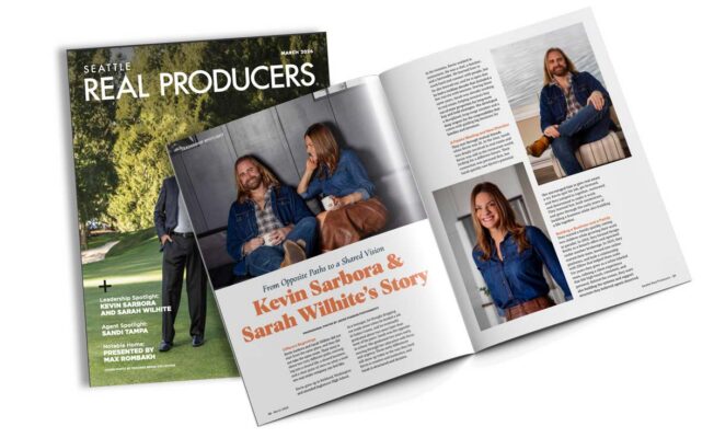 Kevin and Sarah’s story was featured in the March issue of Seattle Real Producers magazine.