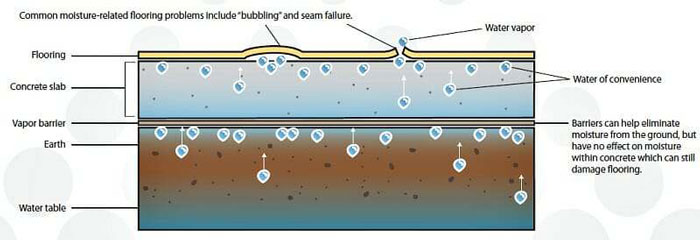 Moisture Infiltration: Without a moisture barrier, moisture from the underlying soil can easily migrate upward through the concrete slab. This moisture infiltration can result from factors such as groundwater, rain, or high soil moisture content.