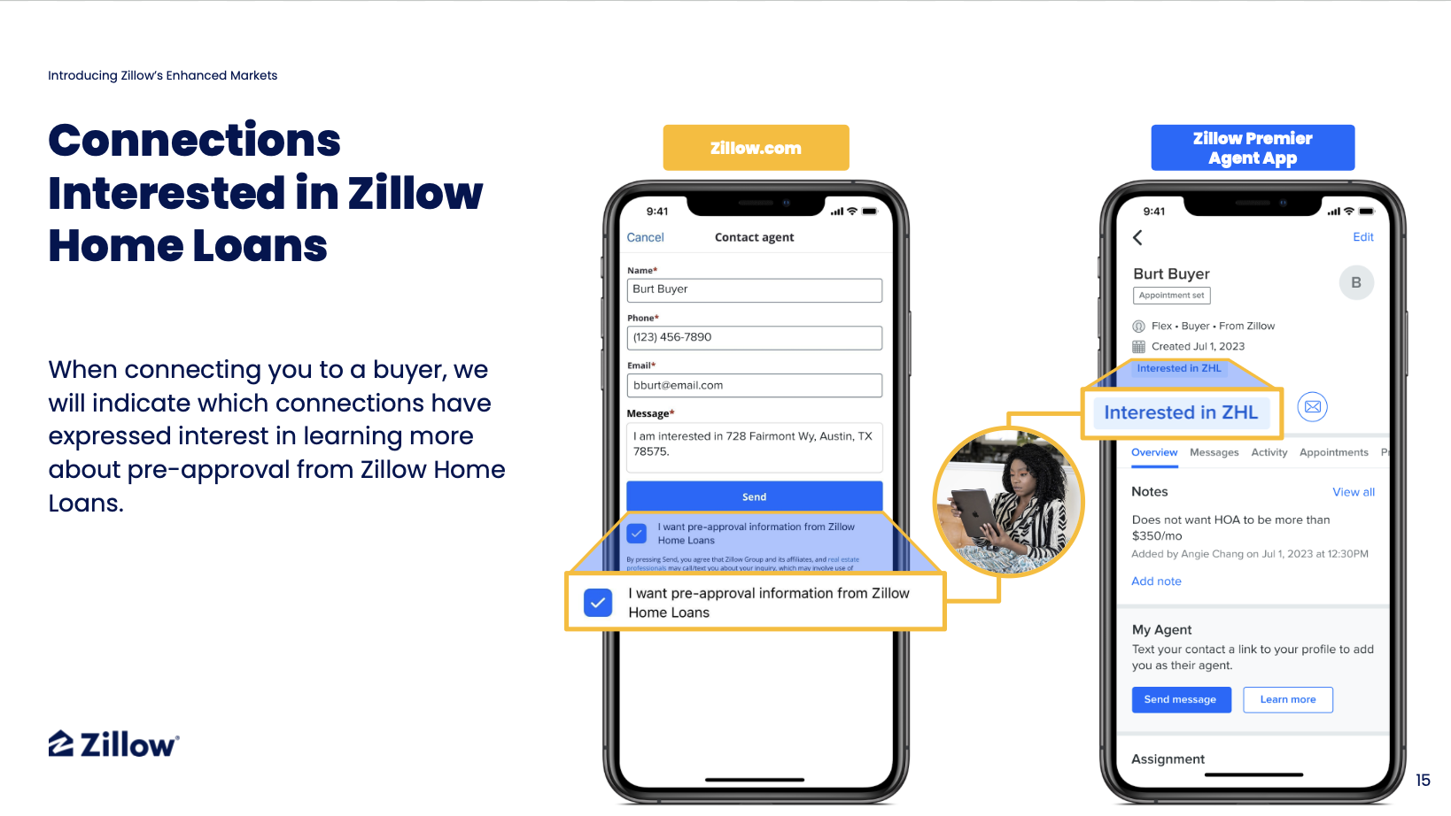 These connections initiate their journey with a Zillow Home Loans loan officer who conducts a thorough pre-approval process by verifying income, assets, and credit, ensuring a high probability of successful closing.